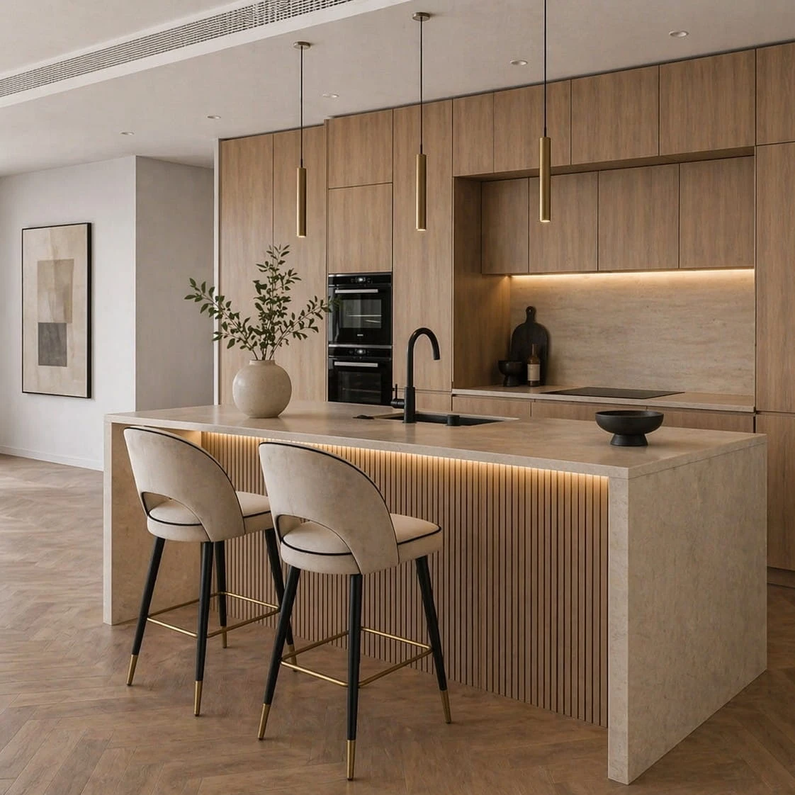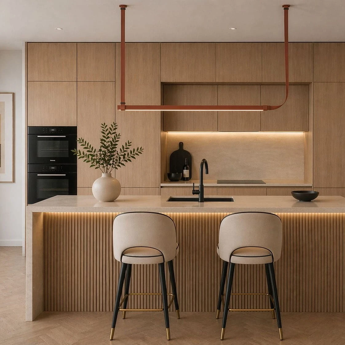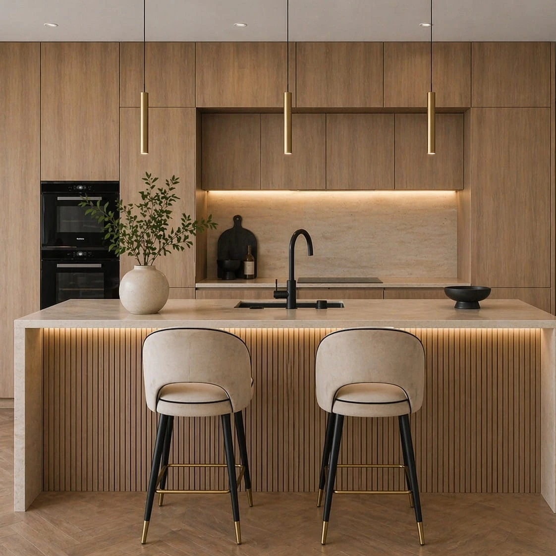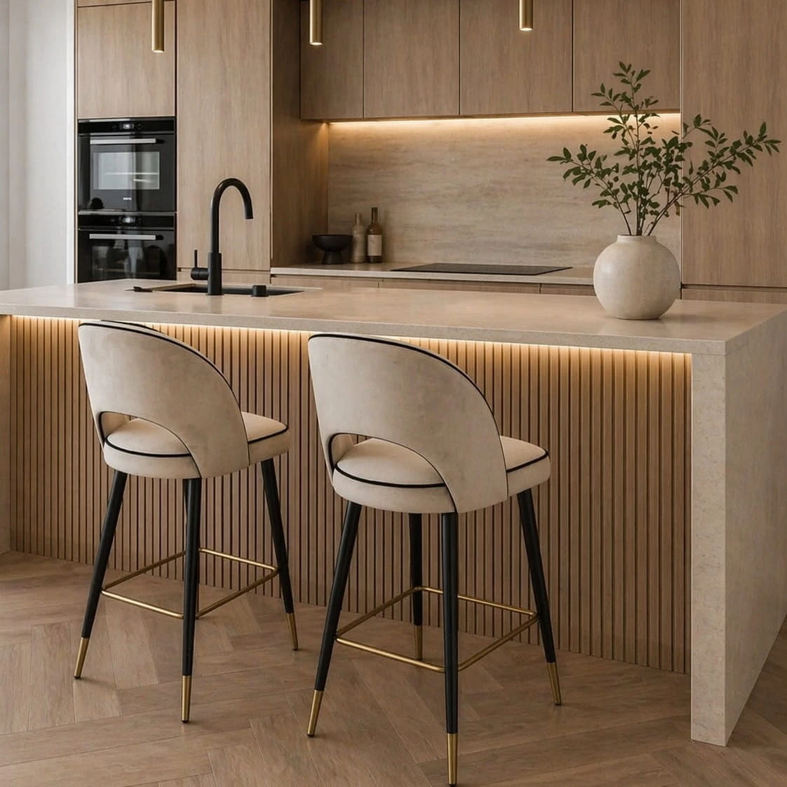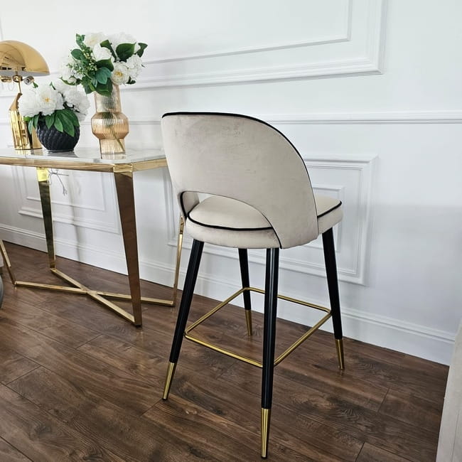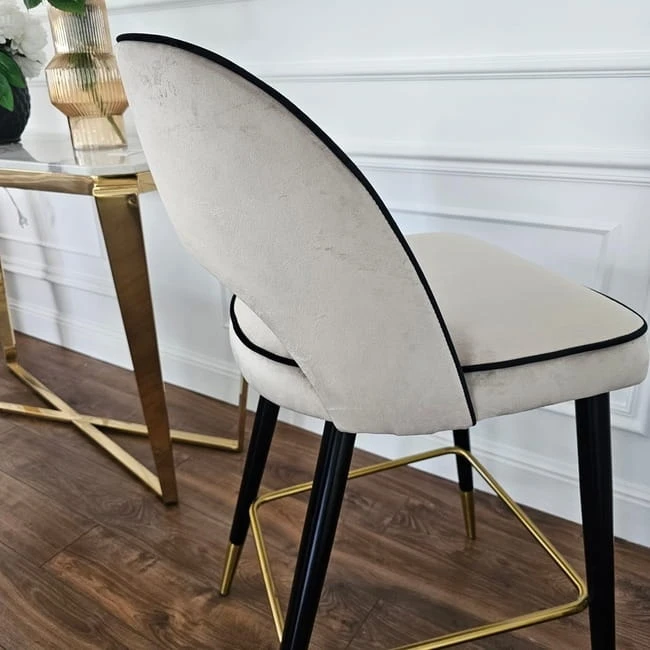 Take your kitchen and dining room design to the next level with the CARDINALE 3 stool. This unique piece is the perfect blend of modern design and the everyday functionality you need. Elegant piping on the backrest adds a touch of elegance, while wooden legs in black and gold steel give it a light and luxurious feel. It's the perfect solution for a kitchen island or a stylish bar.