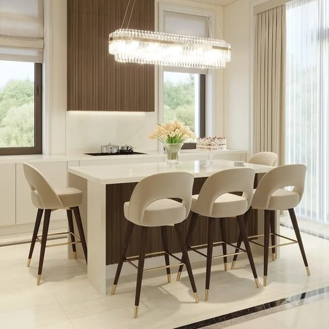 Choose from a wide range of fabric colors and choose the leg finish to perfectly match your interior. Whether you're designing your home in a glamorous, modern, or minimalist style, the CARDINALE 3 stool will perfectly complement your décor.