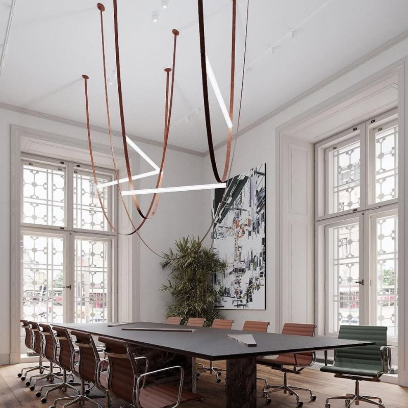 Harmonijne zestawienie brązowej eksoskóry, transparentnego akrylu oraz stali nierdzewnej w wykończeniu szczotkowanego złota tworzy efekt luksusu i ponadczasowej elegancji. Zintegrowane moduły LED emitują subtelne, neutralne światło, które podkreśla formę lampy i nadaje wnętrzu wyjątkowy charakter.
