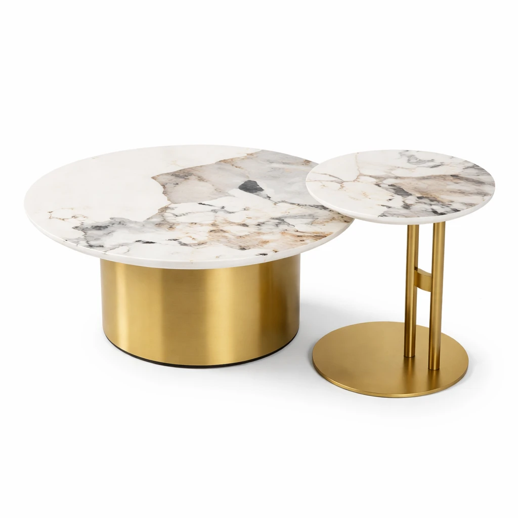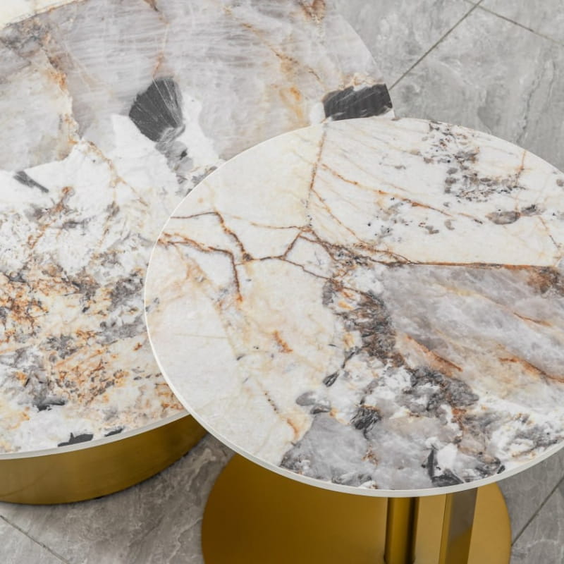Komplet Stolików kawowych okrągły blat PATAGONIA, szczotkowane złoto TWEEN GOLD