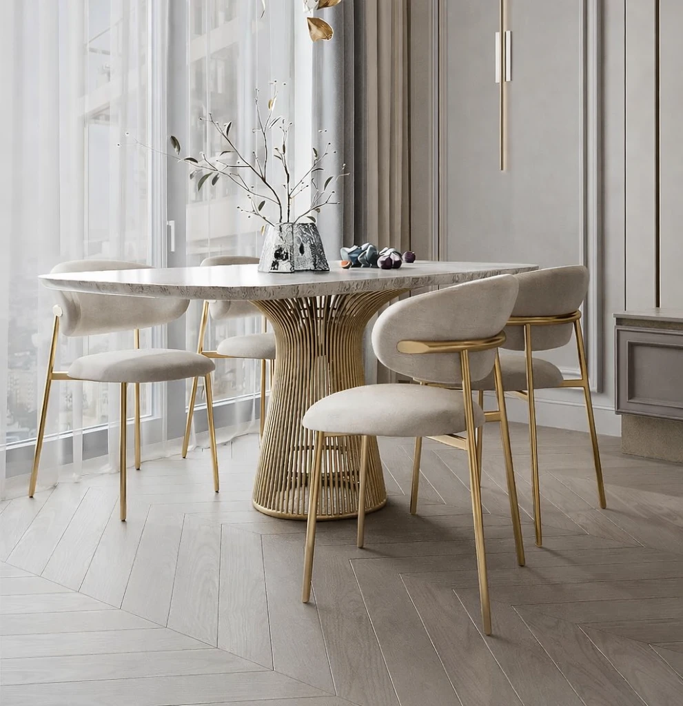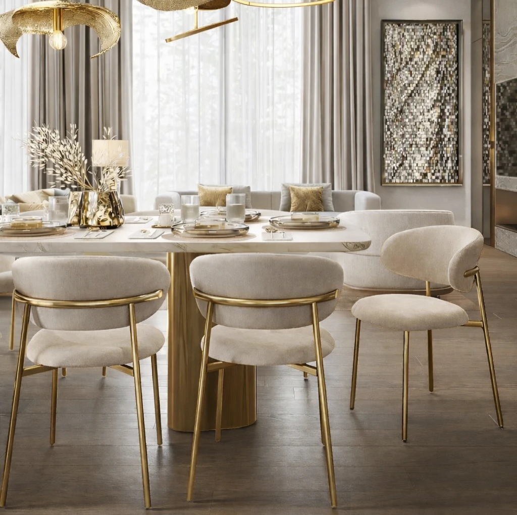 Tapicerowane siedzisko z welwetu oraz stabilna stalowa rama zapewniają wygodę i trwałość. JULIA doskonale komponuje się z nowoczesnymi stołami do jadalni i salonu, dodając wnętrzu subtelnej elegancji.