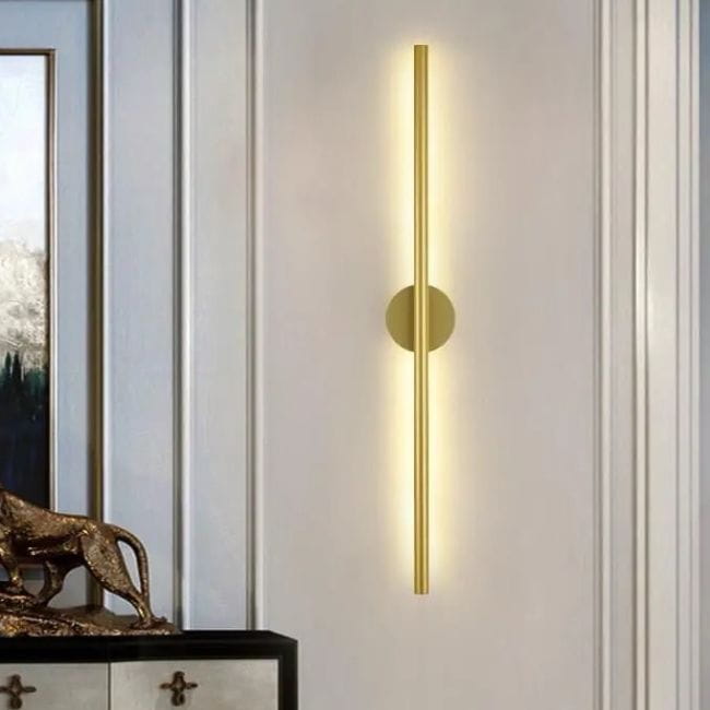 Kinkiet MODERN to wyjątkowe oświetlenie ścienne, które łączy nowoczesną formę z eleganckim wykończeniem w odcieniu titanium gold. Wykonany z trwałej, galwanizowanej stali, wyróżnia się minimalistycznym, podłużnym kształtem, który świetnie wpisuje się w aranżacje w stylu glamour, modern lub loft.