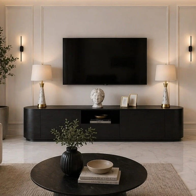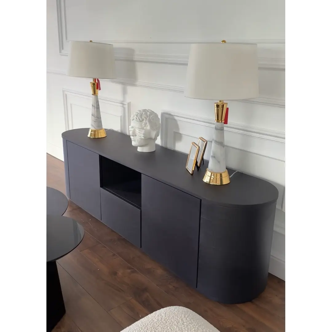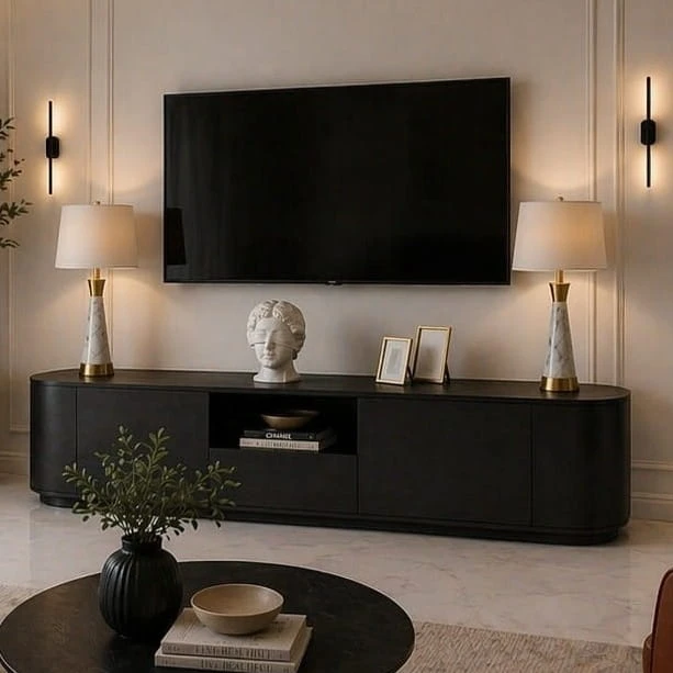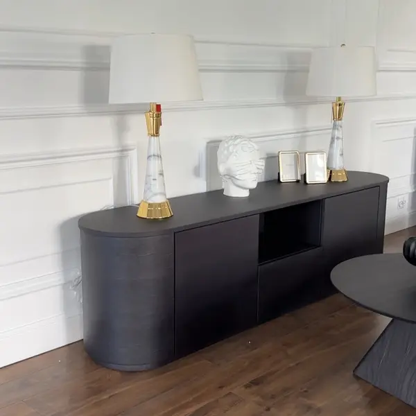 Komoda RTV AMARA to ekskluzywny mebel stworzony z myślą o nowoczesnych i eleganckich wnętrzach. Jej minimalistyczna forma, zaokrąglone krawędzie nadają przestrzeni wyjątkowego charakteru i klasy premium.
