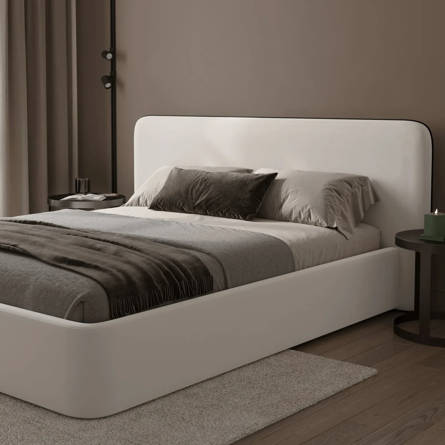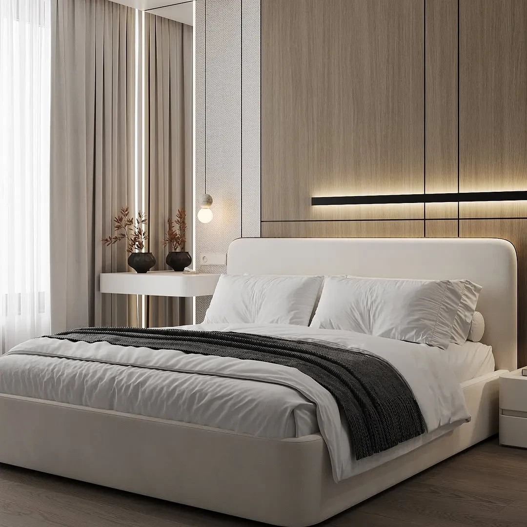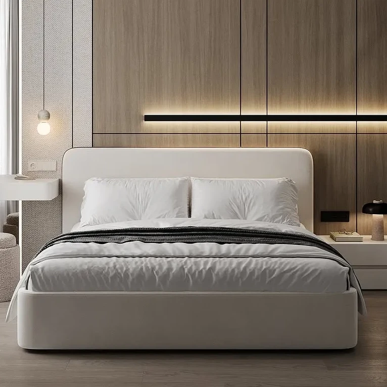 Nowoczesne luksusowe łóżko LUCCA z tapicerowanym zagłówkiem