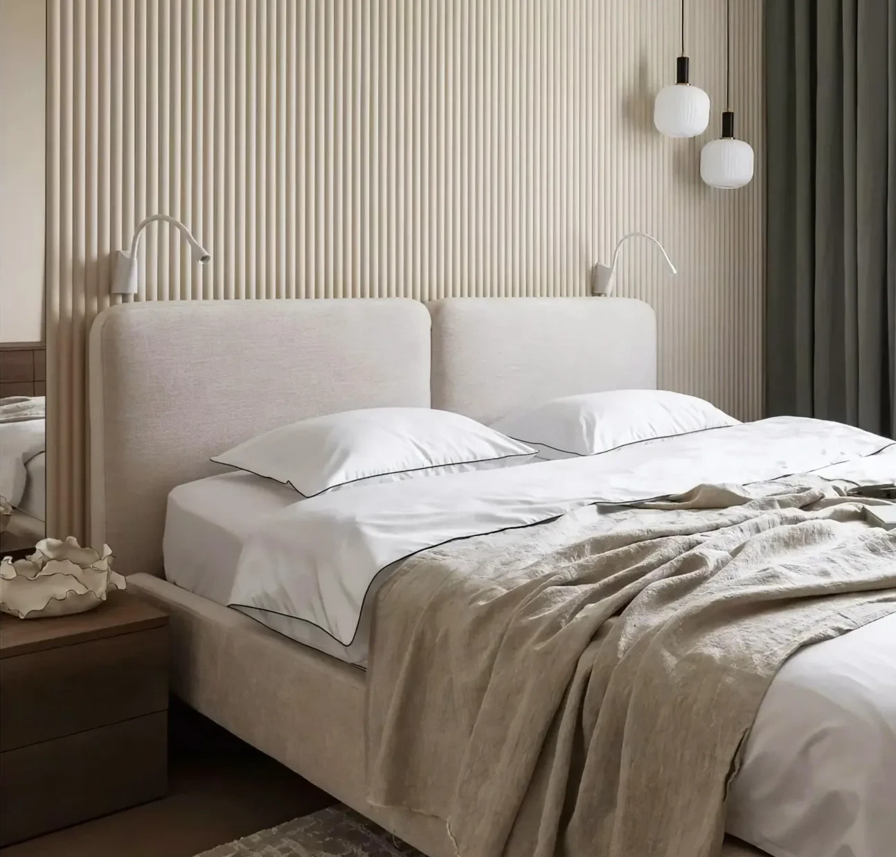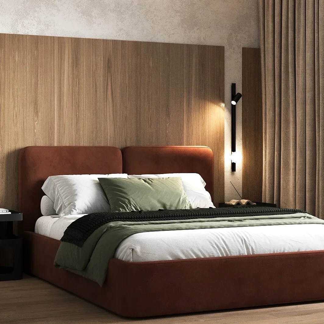 Minimalistyczny design oraz miękkie, tapicerowane zagłówki doskonale wpisują się w nowoczesne aranżacje sypialni, tworząc przytulną i luksusową przestrzeń do odpoczynku. Szeroki wybór kolorów tkanin umożliwia dopasowanie łóżka do indywidualnych preferencji i stylu wnętrza.