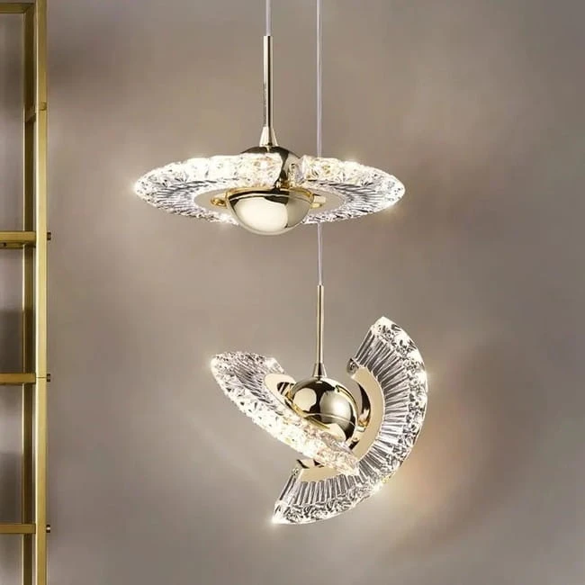 FLOW S to mniejszy wariant designerskiego żyrandola, który zachwyca połączeniem nowoczesności i elegancji. Złote wykończenie oraz finezyjna forma sprawiają, że lampa doskonale komponuje się z wnętrzami urządzonymi w stylu glamour, modern lub klasycznym.