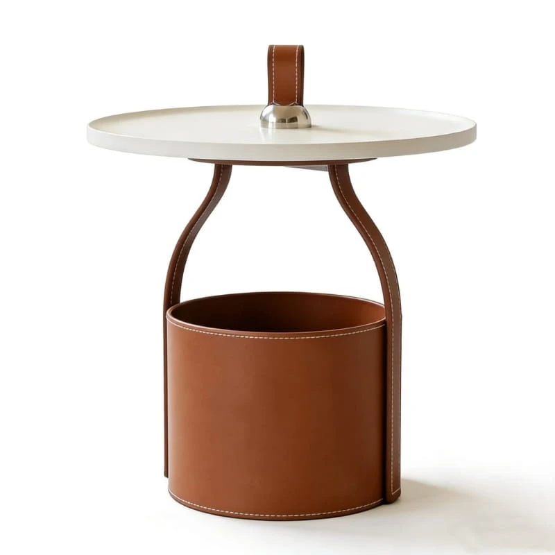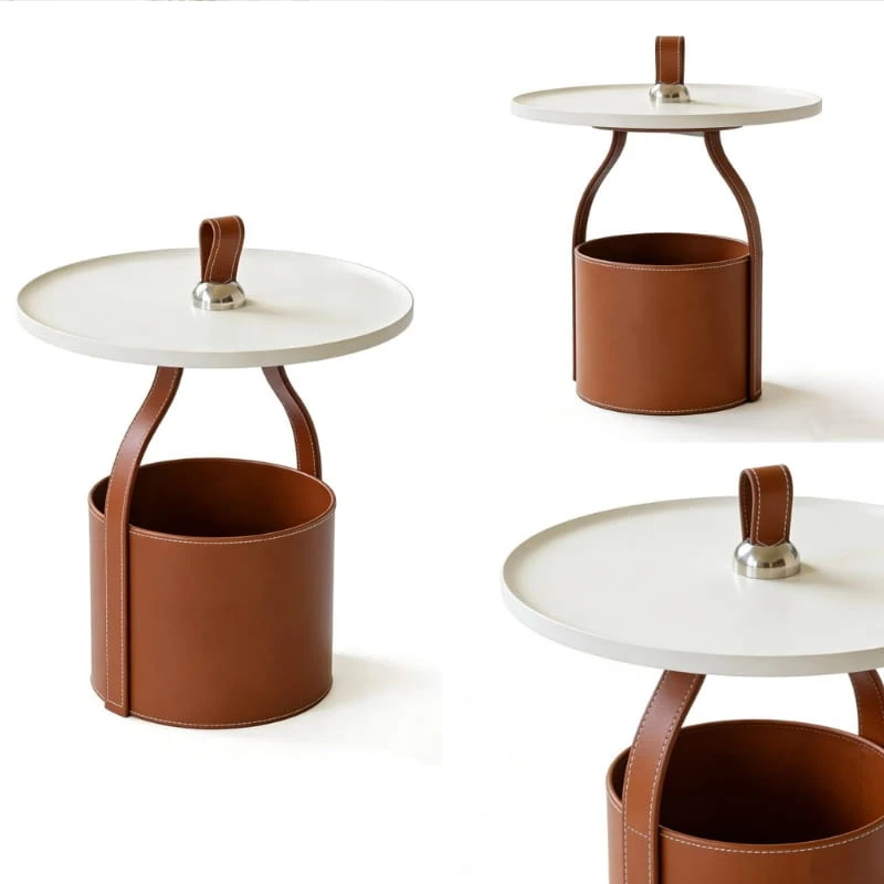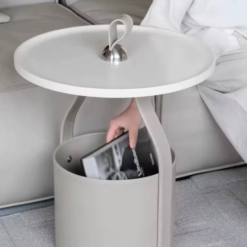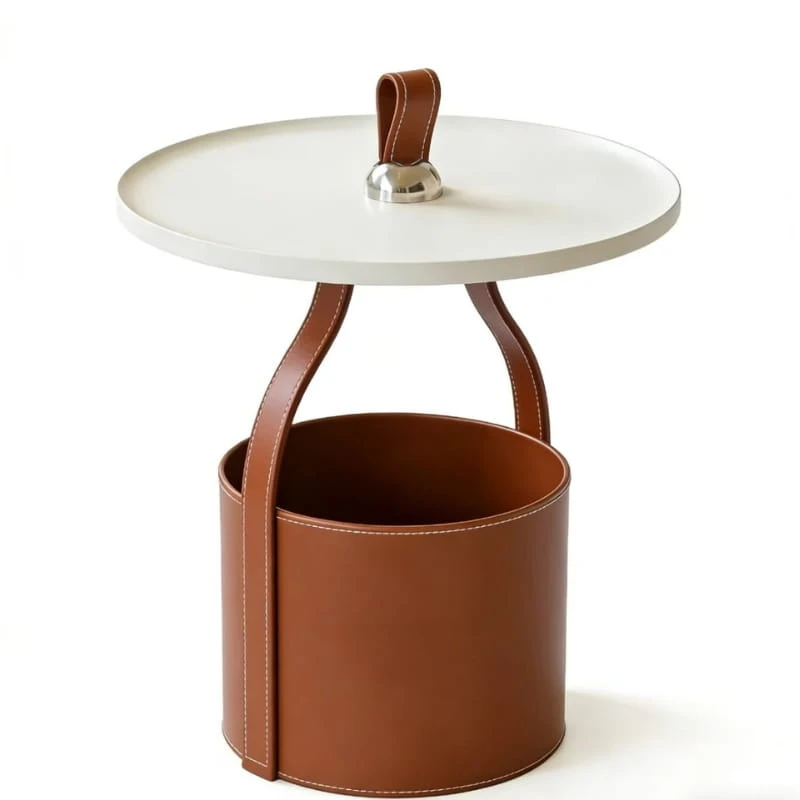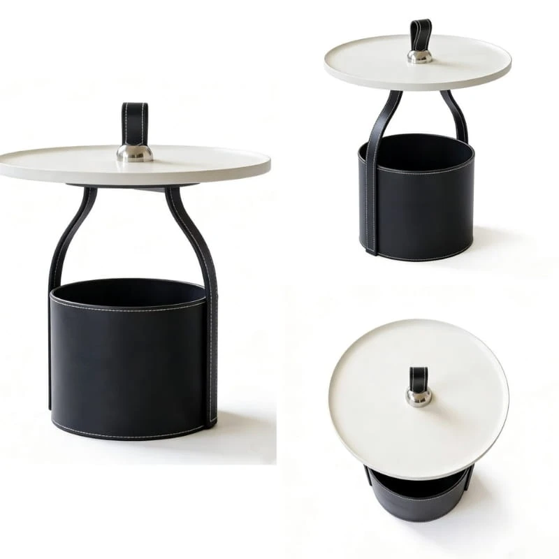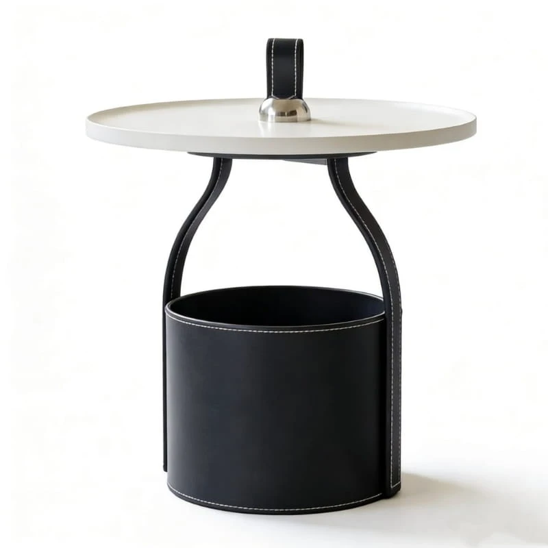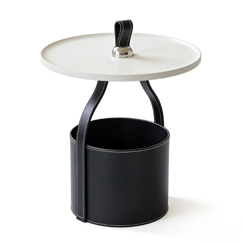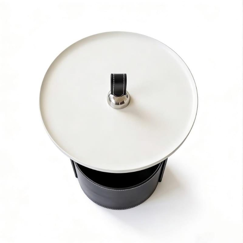 Blat wykonany z trwałego tworzywa sztucznego charakteryzuje się odpornością na codzienne użytkowanie oraz łatwością czyszczenia. Solidna podstawa wykończona ekologiczną skórą dodaje całości wyrafinowanego charakteru i podkreśla nowoczesny styl stolika.