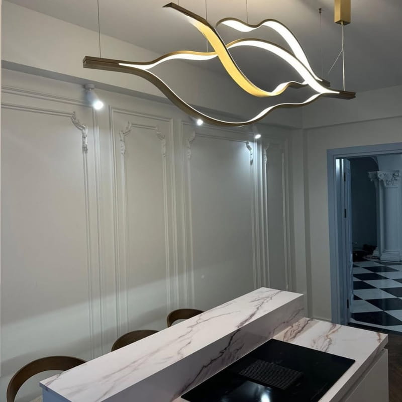 Żyrandol WAVE to połączenie nowoczesnej sztuki i luksusowego designu. Jego płynna, nieoczywista forma przełamuje schematy tradycyjnego oświetlenia, stając się centralnym punktem każdej aranżacji. Wykonany z najwyższej jakości materiałów w złotym lub czarnym wykończeniu, łączy funkcjonalność z prestiżowym charakterem, idealnie wpisując się w wnętrza typu premium.
