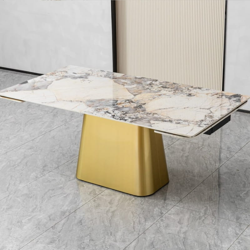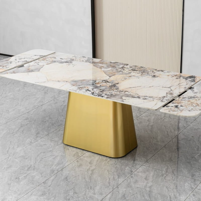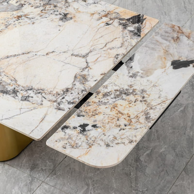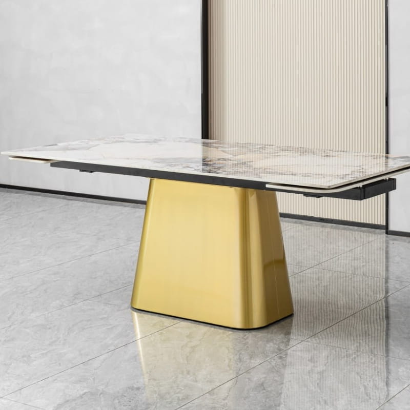 Stół nowoczesny rozkładany złoto szczotkowane blat spiek Patagonia BELISSIMA