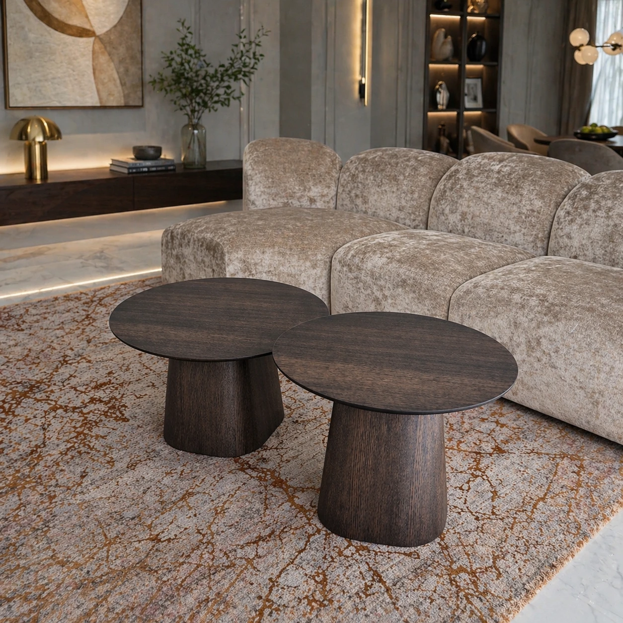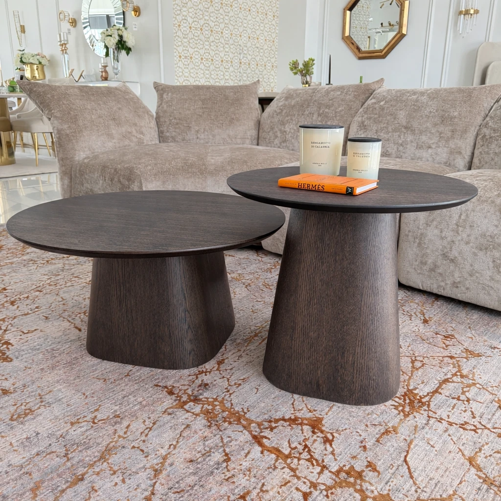 Prezentujemy komplet okrągłych stolików kawowych MODENA, które odmienią Twój salon. To idealne połączenie minimalistycznego designu z naturalnym pięknem drewna. Zestaw składa się z dwóch stolików o różnych wysokościach, które można swobodnie przestawiać, tworząc dynamiczną i funkcjonalną przestrzeń. Doskonale sprawdzą się zarówno jako stolik kawowy, jak i jako stylowy dodatek do kanapy, zapewniając miejsce na lampę, książkę czy filiżankę ulubionej kawy.