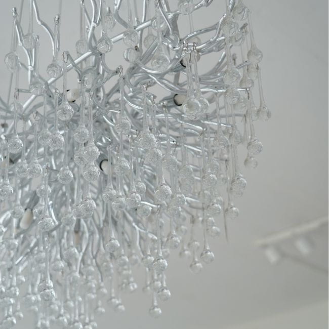 Jej forma, inspirowana spadającymi kroplami deszczu, tworzy efektowną kaskadę kryształowych refleksów. Każdy element odbija światło, nadając pomieszczeniu elegancki i dynamiczny charakter. To oświetlenie, które nie tylko rozświetla wnętrze, ale także podkreśla jego nowoczesny charakter i designerski styl.
