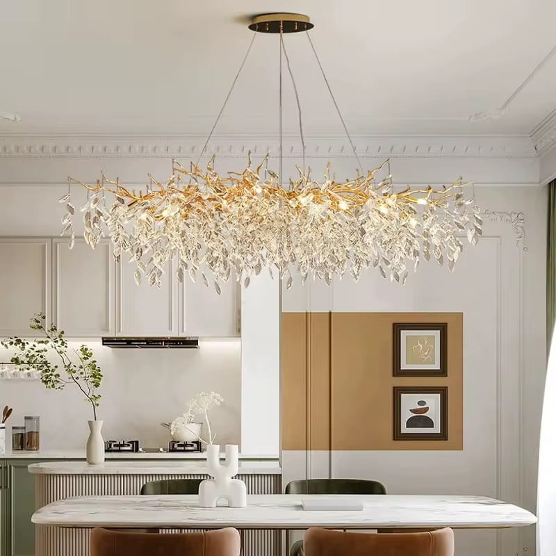 Nowoczesny żyrandol kryształowy złoty QUEEN- designerska lampa wisząca nad stół lub wyspę kuchenną